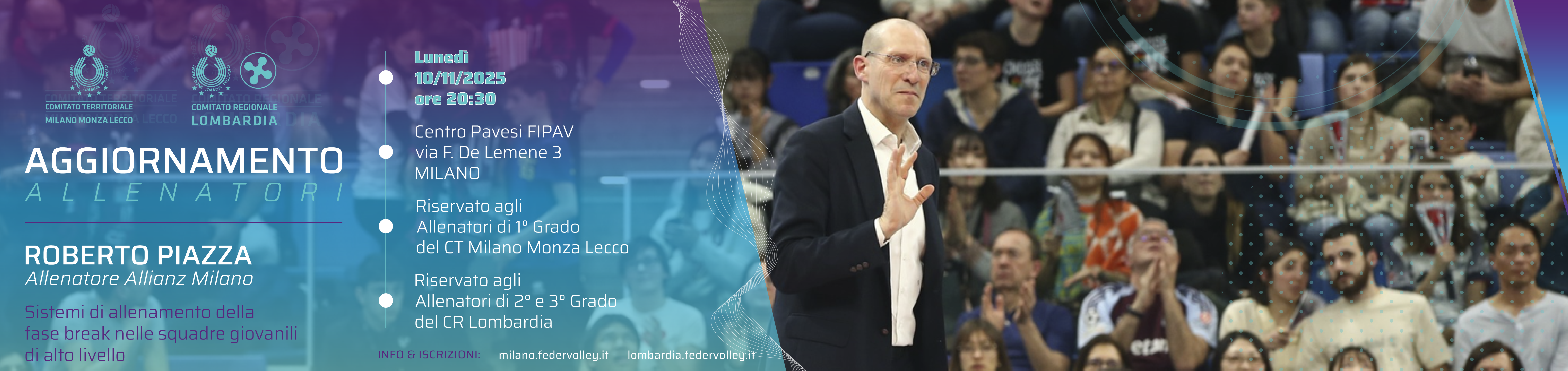 Il Comitato Territoriale di Milano Monza Lecco, in collaborazione con Fipav Lombardia, indice il corso di aggiornamento "Sistemi di allenamento della fase break nelle squadre giovanili di alto livello" rivolto agli Allenatori di Secondo e Terzo Grado della Lombardia e valido come un modulo di aggiornamento per la Stagione 2025/26.